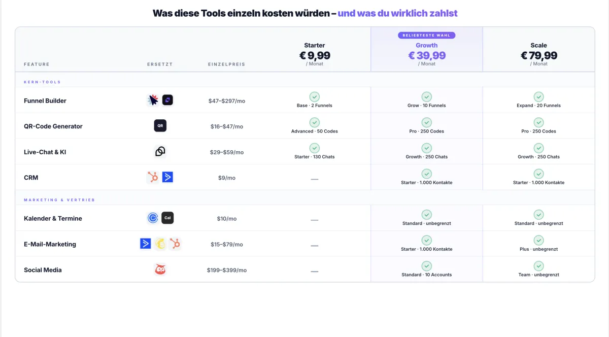 Nein. Speziell der Starter Plan ist so gestaltet, dass du ohne Programmierkenntnisse sofort loslegen kannst. Ausserdem stehen über 1000 weitere Vorlagen im Bereich Funnels/ Websites zur Verfügung, sodass du auch alle deine anderen Projekte über die Plattform verwalten kannst.