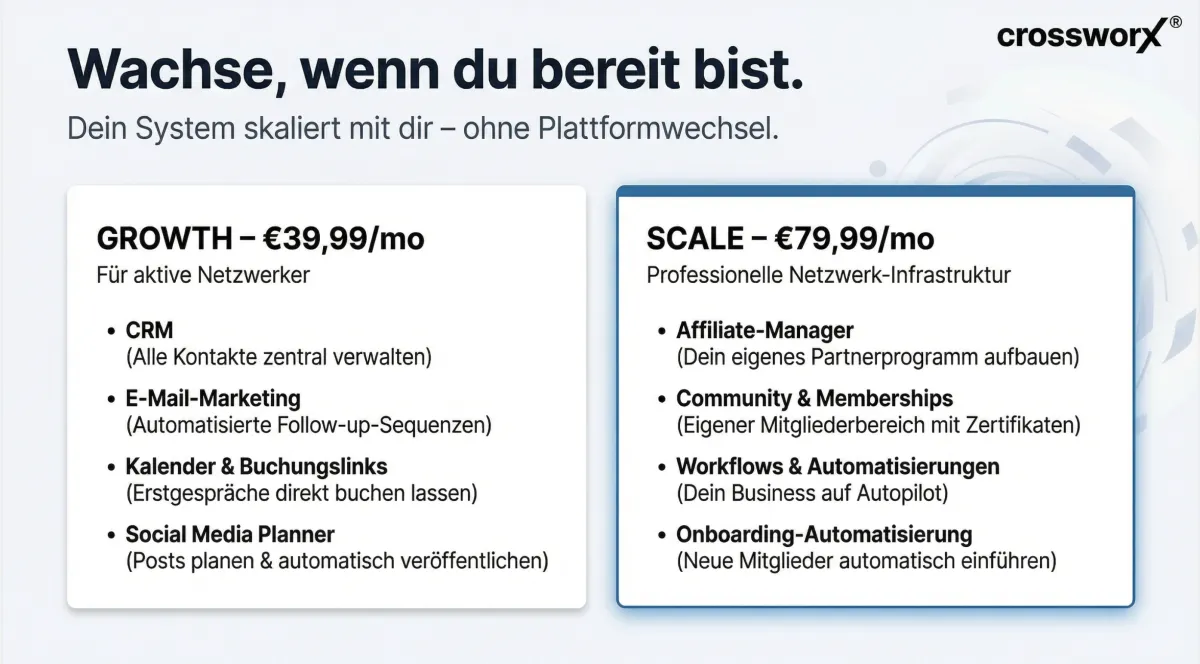 Das Toolkit gibt dir alle Tools, die du als Netzwerker brauchst - von fertigen Funnel-Vorlagen über automatisierte Follow-ups bis zum eigenen Community-Bereich für dein Team.
